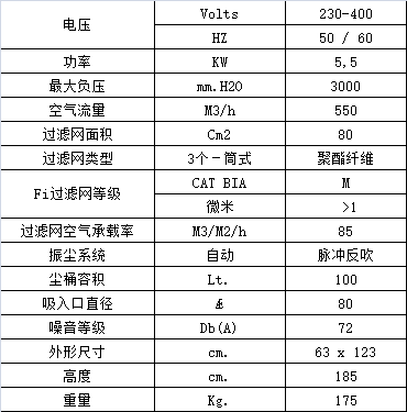 3个聚酯纤维筒式过滤网装在钢制过滤舱中,总过滤面积80000 cm2,过滤精度 高达1微米 。全自动空气脉冲反吹清洁系统通过压缩空气轮流吹向筒式滤网,清洁频率可通过控制面板上的定时器进行设置,能持续有效地清洁过滤网,清除附着在滤网上的大部分灰尘,从而保持机器正常的吸尘功效和延长滤网使用寿命。模压铝制吸尘口直径为Ø80 mm,位于过滤网下面,能够同时吸尘、吸固体和吸水(水量不得超过尘桶容量),无需更换或取出过滤网。  压缩机需另配。