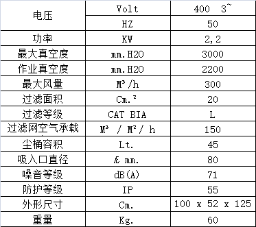 吸尘系统装有1个旁路风机,风扇直联在涡轮电机轴上,勿需任何传动装置,转速2850 RPM,完全免维护,适合24小时连续繁重作业,几乎无噪音;控制面板上装有电机热保护开关和真空表;排风口处装有1个扩散式过滤网,能降低排气风速和排气噪音。