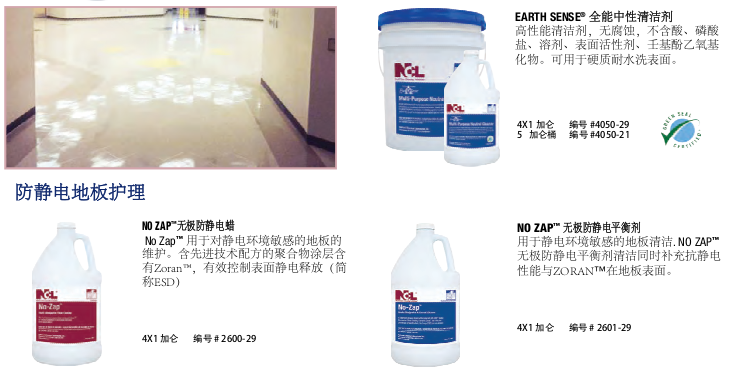 无论您使用哪一种类型硬表面地 面,NCL世界级的地板护理产品能美化地板的同时,极大程度地 节约劳动力。与各种各样的地板护理系统相 比,NCL地板护理程序,可以满足您在苛刻的环境下使用。
